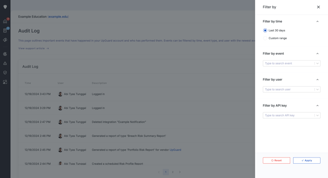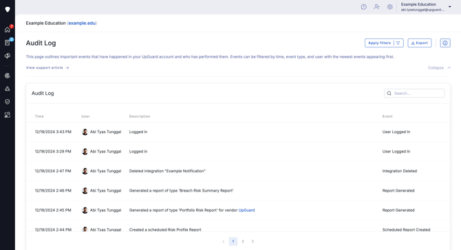 Learn about UpGuard’s Audit Log and the events that are captured by it.