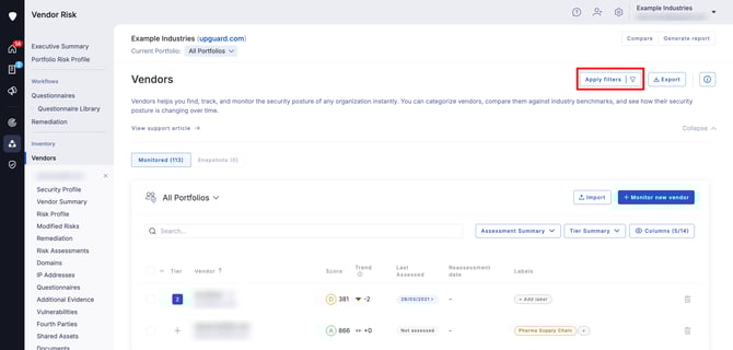 Learn how to filter your monitored vendors in UpGuard