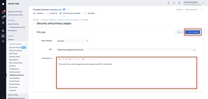 Comments can be added to all links, irrespective of whether they have been added by UpGuard, users within the vendor's organization, or users within your own organization.